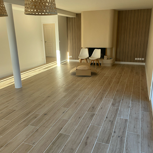 Nous adaptons le sens de pose en fonction de la configuration de vos pièces : pose droite classique, pose deux tiers un tiers (carreaux imitation parquet 20x120cm) ou pose en chevrons pour un effet parquet. Nous proposons également la pose multiformat (Opus). Le choix de la technique permet d’optimiser l’esthétique de votre intérieur tout en assurant une solidité parfaite.